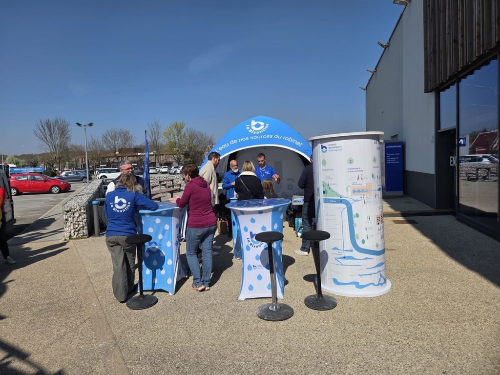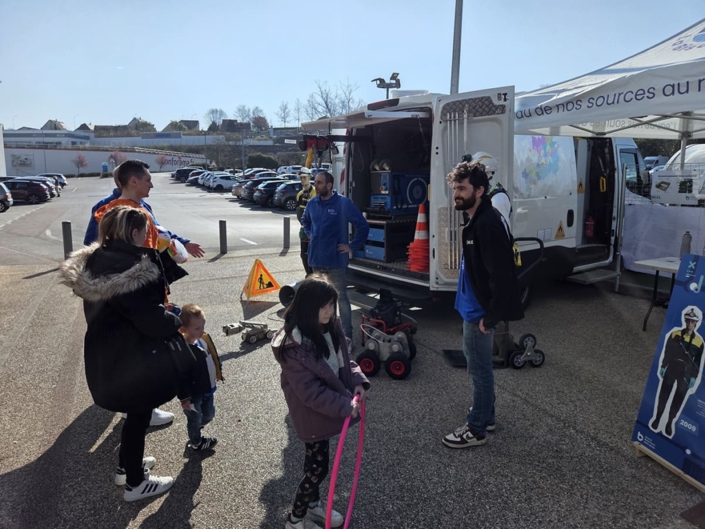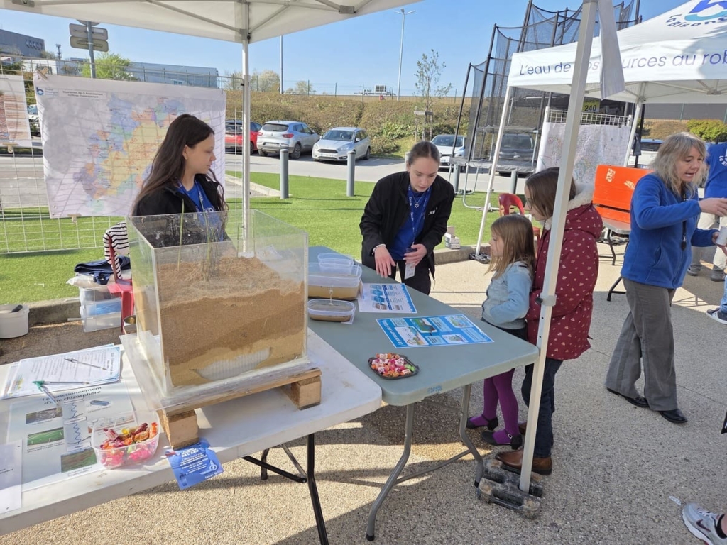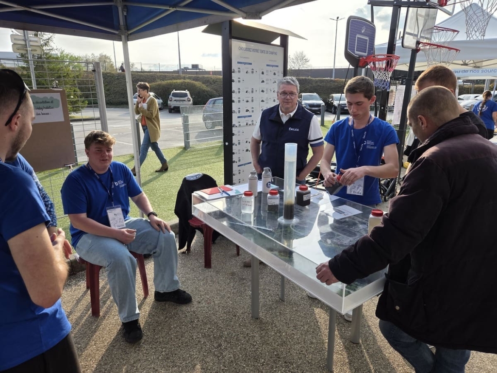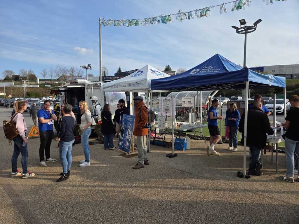 Les étudiants de l’ENILEA, accompagné de Claire Tinguely et Thomas Jeanclerc, enseignants et les équipes du département Eau et Assainissement ont accueilli les visiteurs sur le parvis de Décathlon dans la zone Chateaufarine, autour de quatre ateliers :