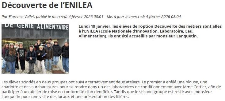 Eclat Collège Jules Grévy – 04/02/2026 – Découverte de l’ENILEA