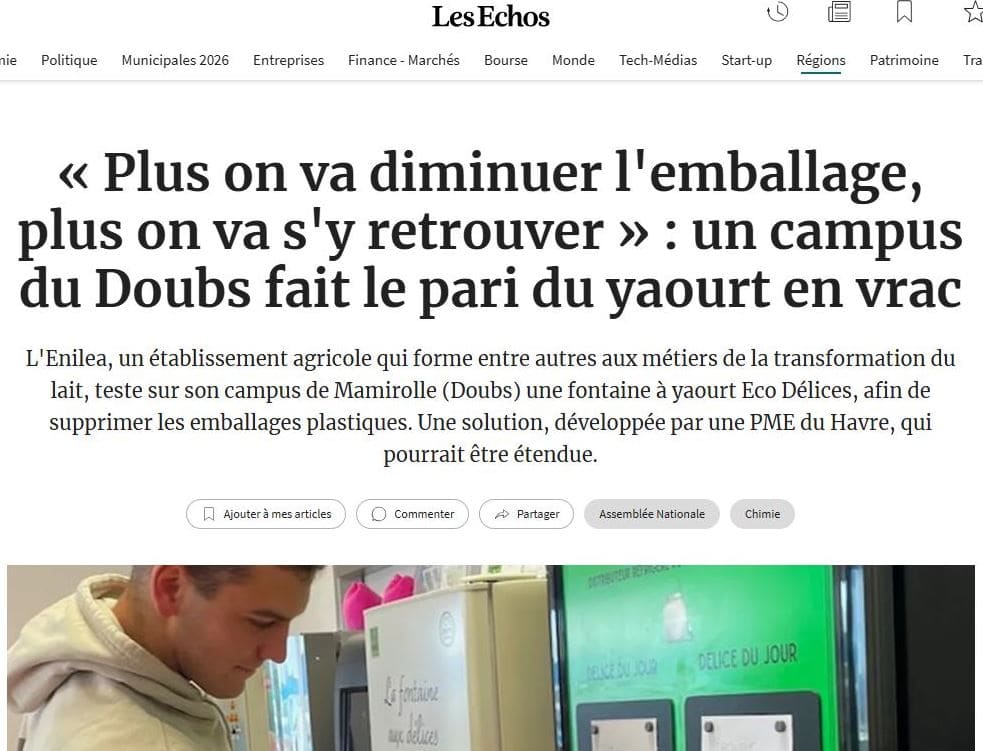 Les Echos – 06/02/2026 – « Plus on va diminuer l’emballage, plus on va s’y retrouver » : un campus du Doubs fait le pari du yaourt en vrac