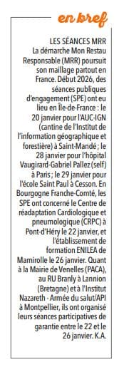 Restauration Collective – 01/03/2026 – En bref : Les séances MRR