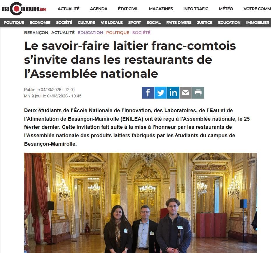 macommune.info – 04/03/2026 – Le savoir-faire laitier franc-comtois s’invite dans les restaurants de l’Assemblée nationale