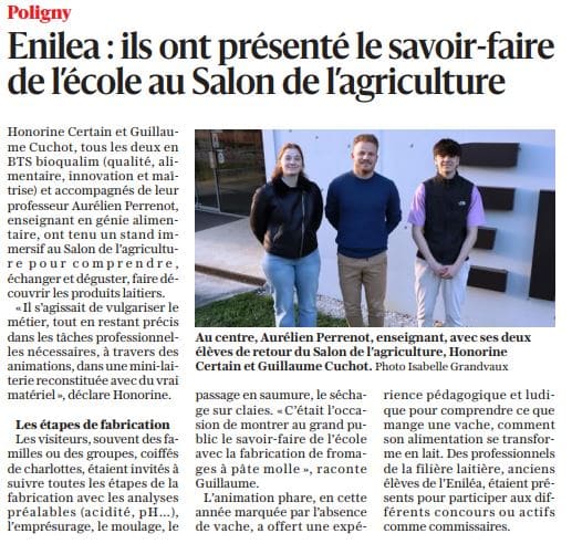 Le Progrès – 04/03/2026 – Poligny – ENILEA : ils ont présenté le savoir-faire de l’école au Salon de l’agriculture