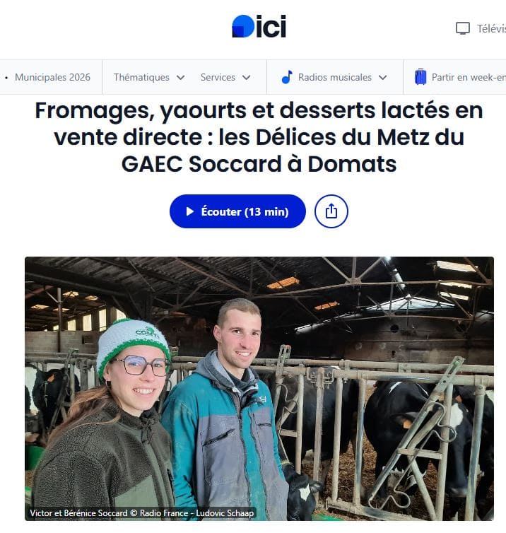 ICI Auxerre – 09/03/2026 – Fromages, yaourts et desserts lactés en vente directe : les Délices du Metz du GAEC Soccard à Domats