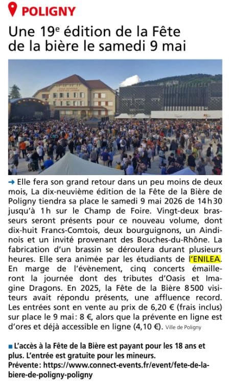 Le Progrès – 15/03/2026 – Poligny – La billetterie en ligne pour la Fête de la bière ouverte