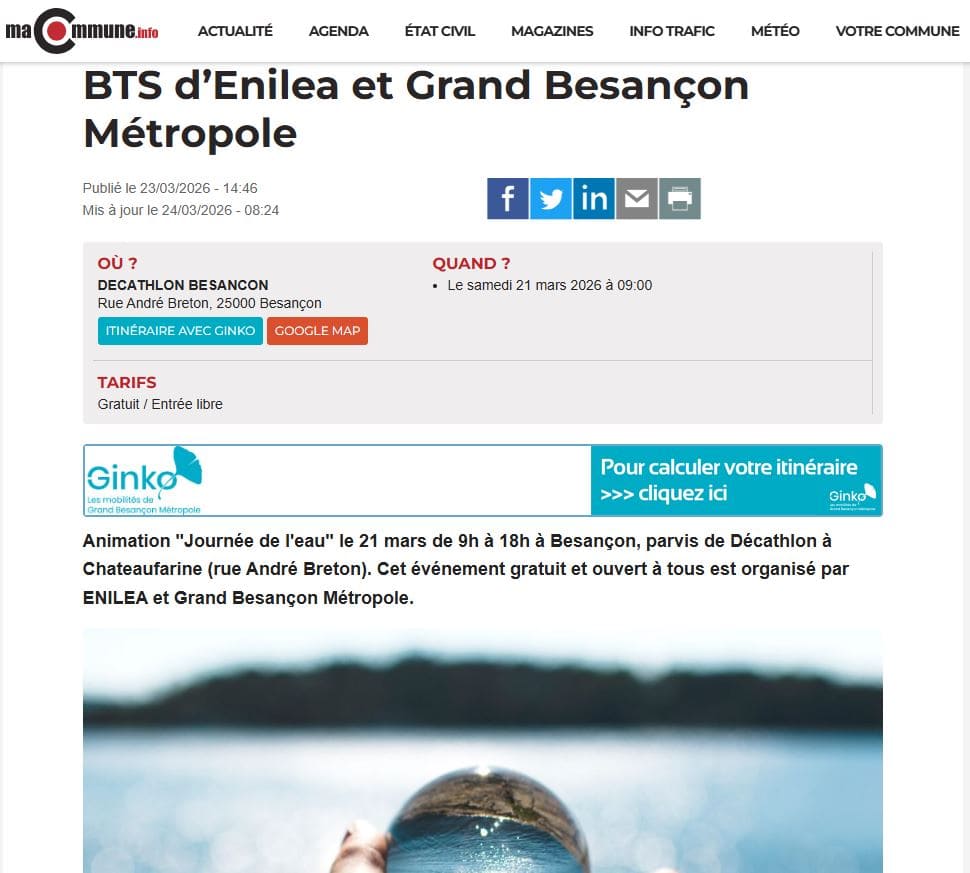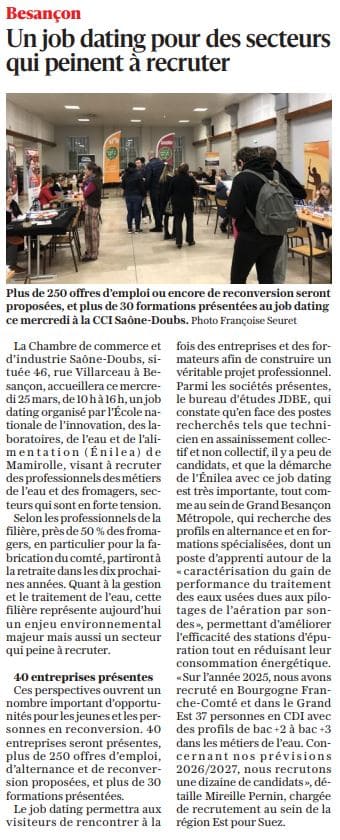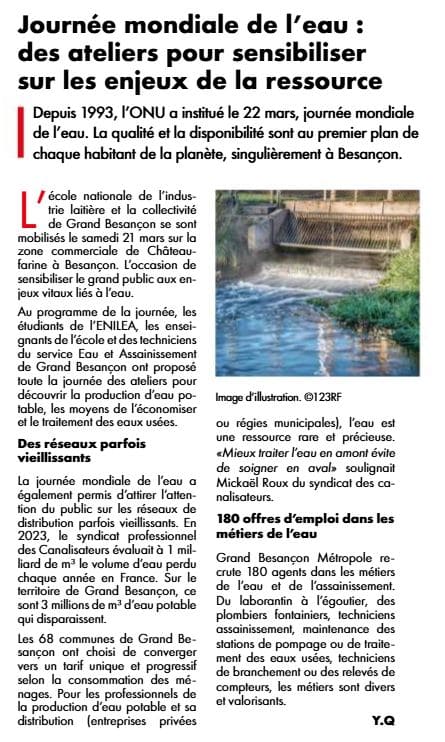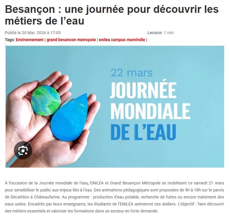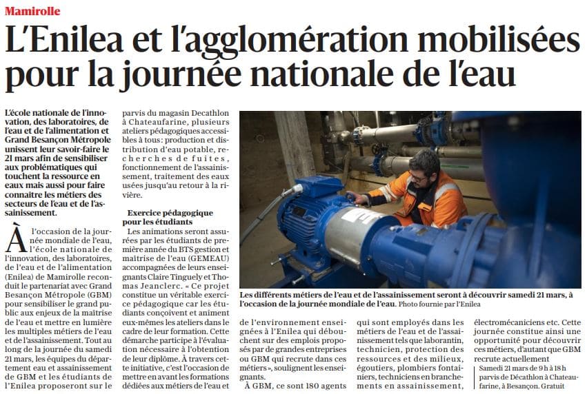 Est Républicain – 15/03/2026 – Mamirolle – L’ENILEA et l’agglomération mobilisées pour la journée nationale de l’eau