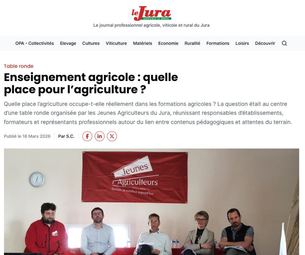 Le Jura Agricole et Rural – 16/03/2026 – Table ronde – Enseignement agricole : quelle place pour l’agriculture ?