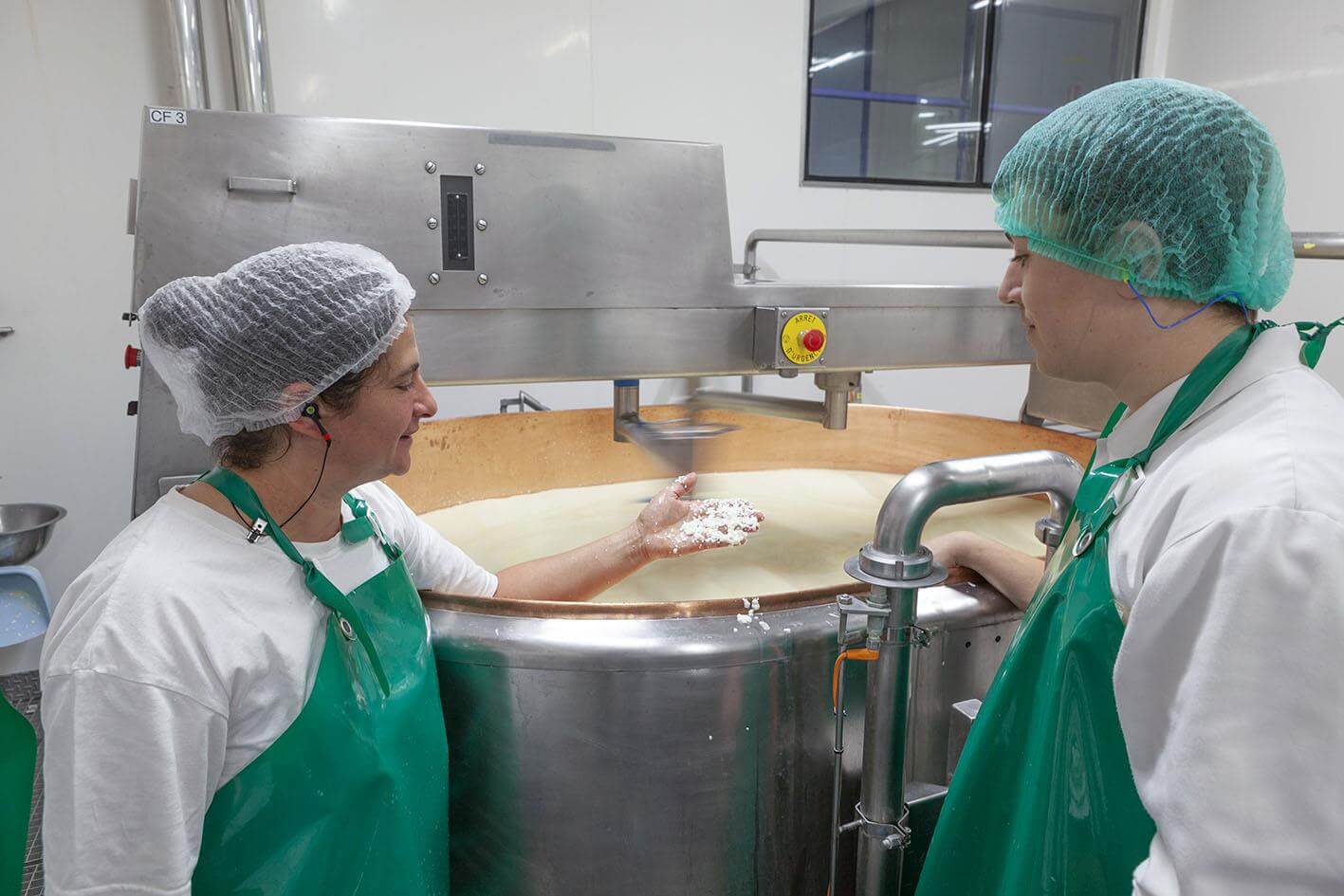 L’objectif est de former des fromagers capables de maîtriser les technologies fromagères essentielles à la création de fromages authentiques. En mettant l’accent sur la pratique et les sciences liées aux fromages de terroir, vous aurez l’opportunité d’étudier les fromages AOP de tous types (fromages de vaches, chèvres, brebis, pâtes pressées cuites, pâtes molles, pâtes persillées..), d’explorer la technologie fromagère, la fabrication, la production du lait et sa fromageabilité, l’analyse sensorielle, le management d’atelier, l’environnement, la gestion de l’énergie et des effluents…