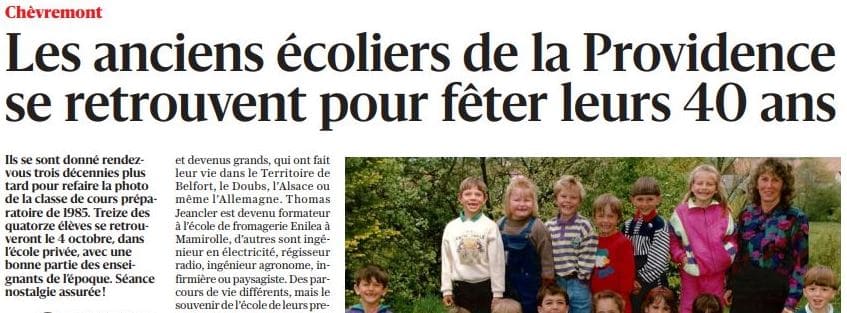 Est Républicain – 10/09/2025 – Chèvremont – Les anciens écoliers de la Providence se retrouvent pour fêter leurs 40 ans