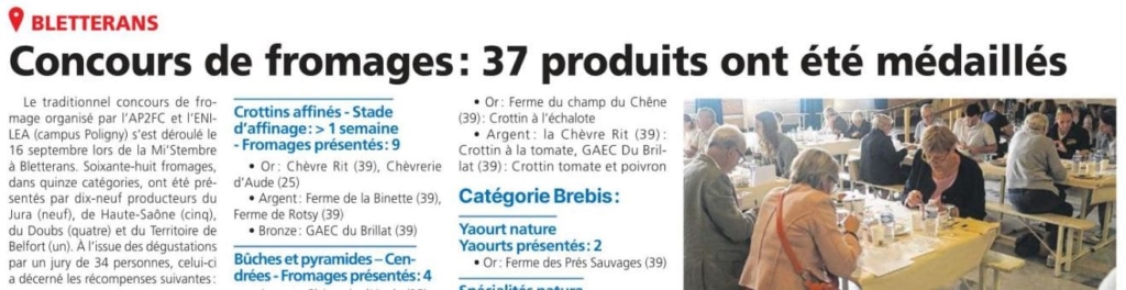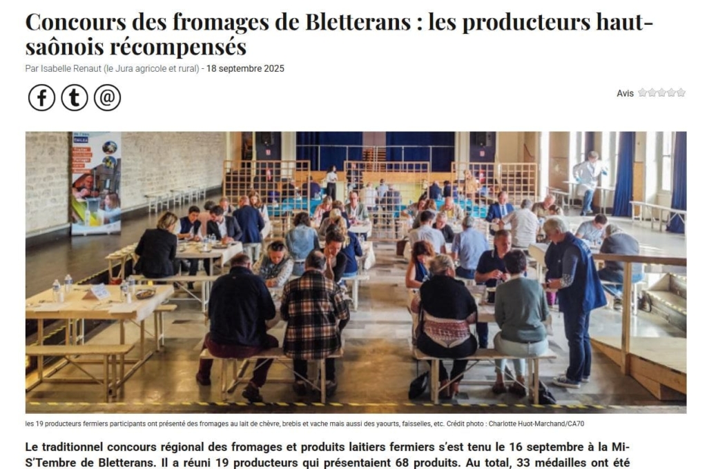 Le Progrès – 30/09/2025 – Bletterans – Concours de fromages : 37 produits ont été médaillés